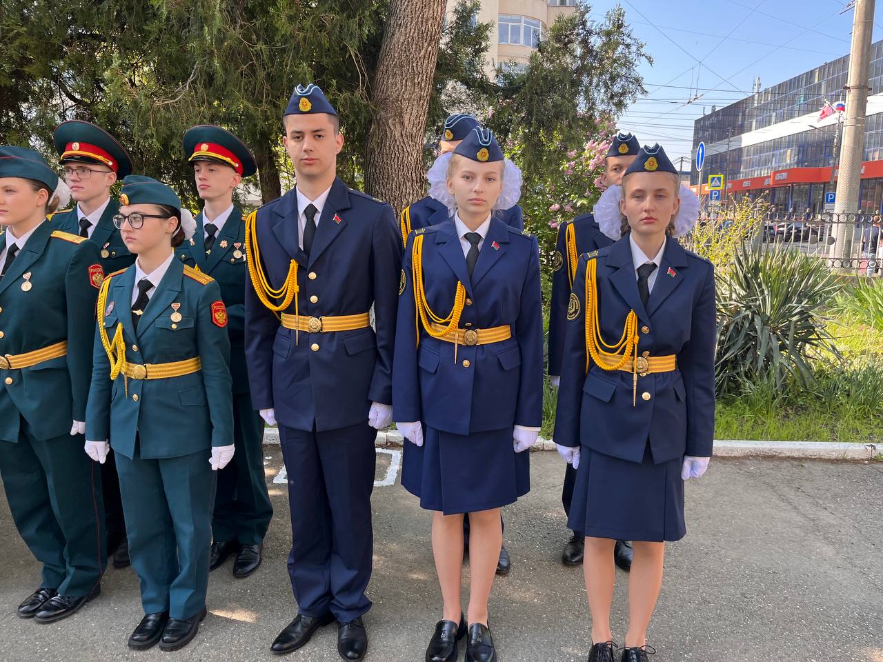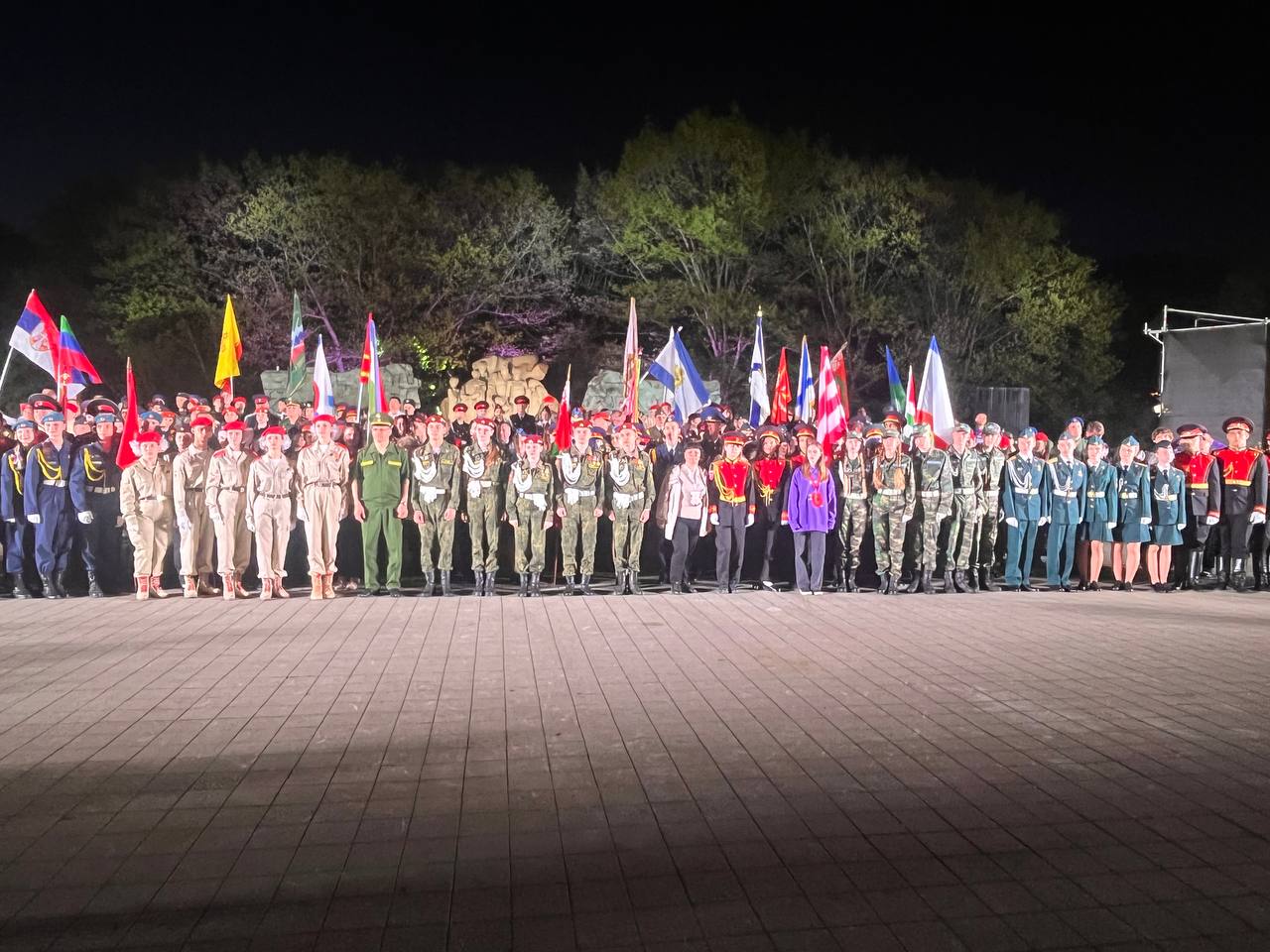 🎖 Флагоносцы торжественным маршем прошли у мемориала.
