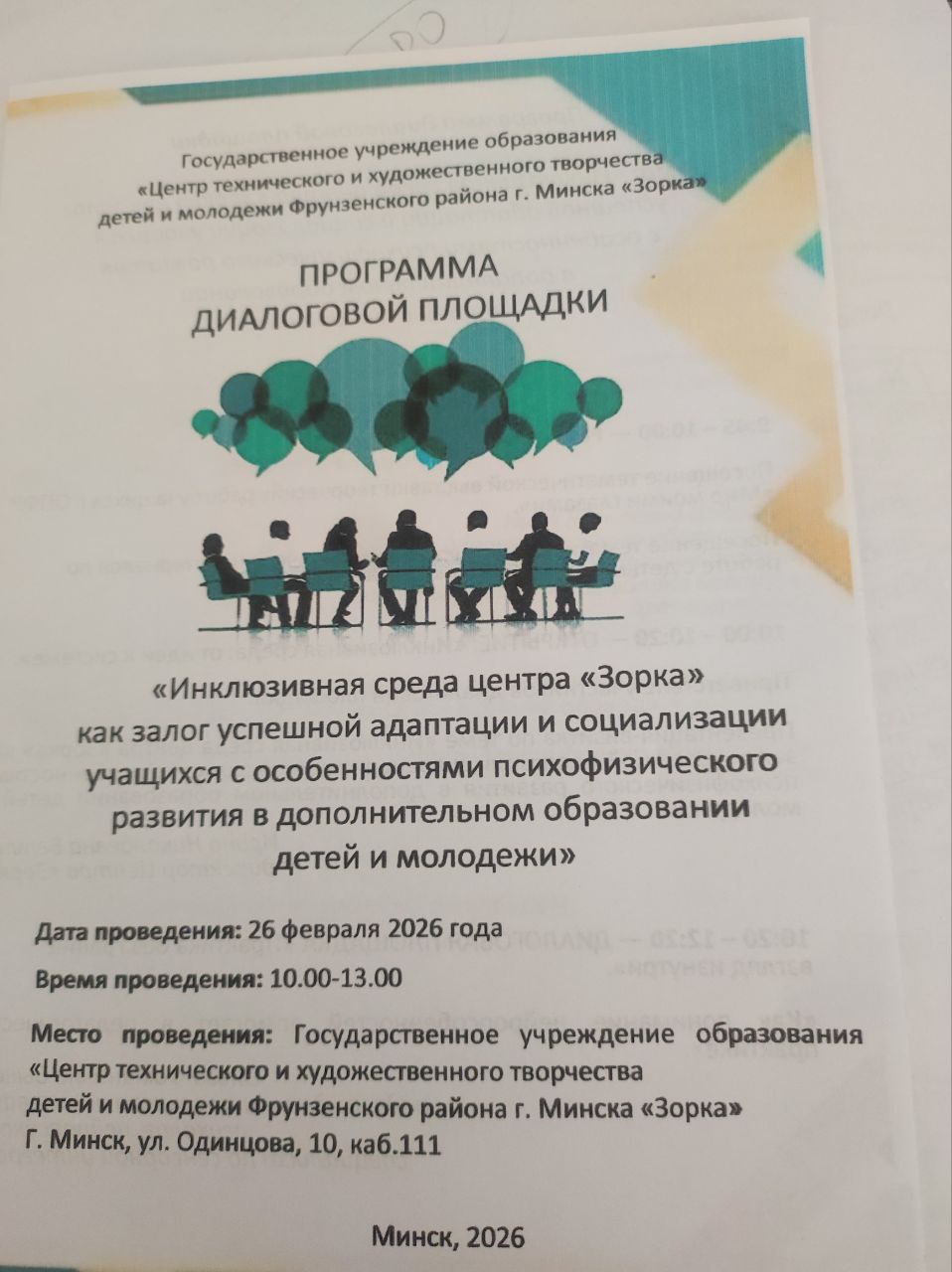 Диалоговая площадка "Инклюзивная среда центра дополнительного образования детей и молодежи "Зорка" как залог успешной адаптации и социализации учащихся с особенностями психофизического развития в дополнительном образовании детей и молодежи" в Центре дополнительного образования детей и молодежи «Зорка» является важным механизмом реализации принципов инклюзивного образования в системе дополнительного образования. Она создает условия для равного участия всех детей в образовательном процессе, способствует их успешной адаптации и социализации, формирует культуру уважения и принятия.